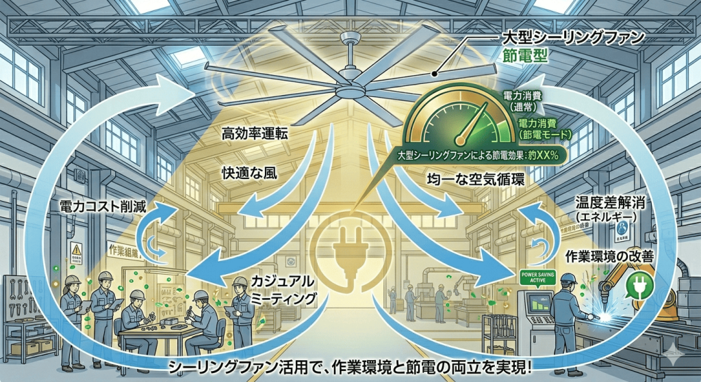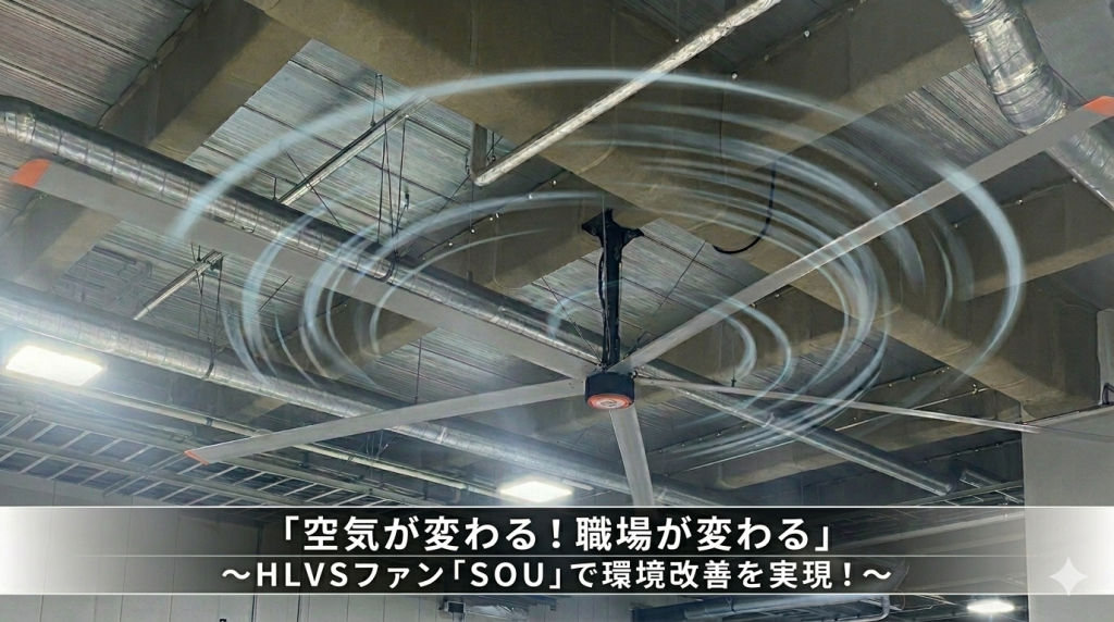 大型シーリングファン「SOU」が、御社の工場・倉庫を「選ばれる職場」へと変革します。